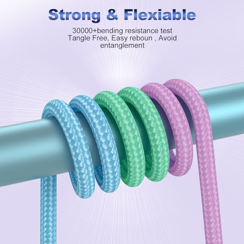The iPhone charging cord is made of high quality nylon braid. which is not only more durable and wear-resistant. but also bring you wonderful visual experience and add color to your life. Premium nylon braid adds extra tangles with 20000+ bending life. Perfect 6 feet. enjoy the free life.